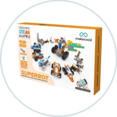Makerzoid Superbot дарує вам і вашій дитині безмежне задоволення від спільного конструювання, гри та змагань з моделями машин
